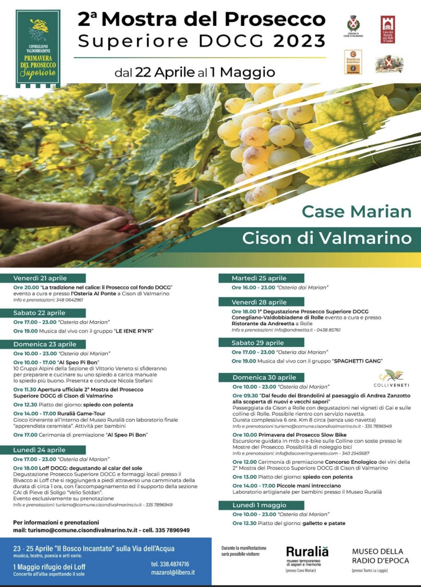 La Pro Loco di Cison di Valmarino con il patrocinio del Comune di Cison di Valmarino nell’ambito della Primavera del Prosecco 2023 ha organizzato la 2ª Mostra del Prosecco Superiore DOCG 2023.