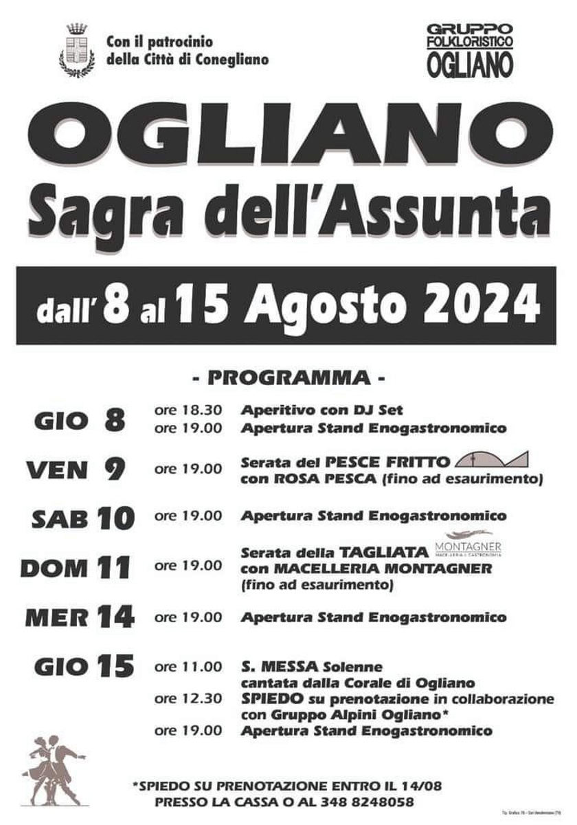 Il Gruppo Folkloristico Ogliano con il patrocinio della Città di Conegliano ha organizzato la Sagra dell’Assunta a Ogliano 2024.