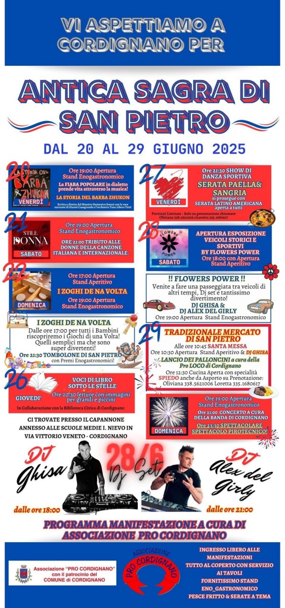 La Pro Cordignano APS con il patrocinio del Comune di Cordignano ha organizzato l’Antica Sagra di San Pietro 2025.