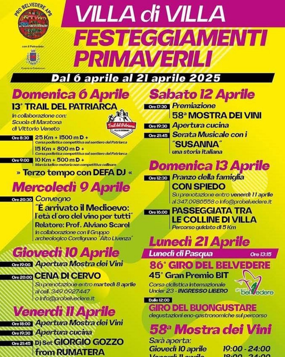 La Pro Belvedere APS con il patrocinio del Comune di Cordignano ha organizzato i Festeggiamenti Primaverili 2025 a Villa di Villa di Cordignano.