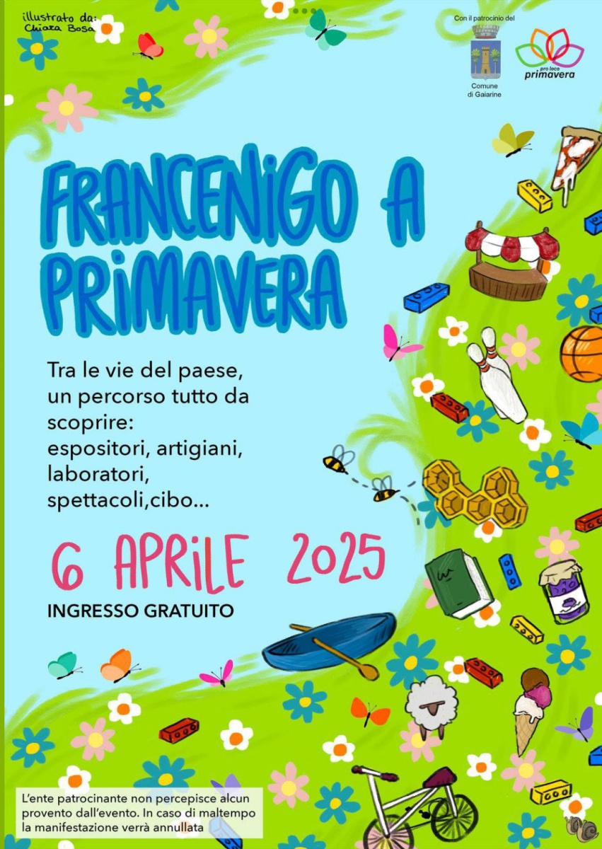 La Pro Loco Primavera con il patrocinio del Comune di Gaiarine e con la collaborazione delle associazioni cittadine ha organizzato la 9ª Francenigo a Primavera, la festa di primavera dedicata all’artigianato, ai fiori e sapori.