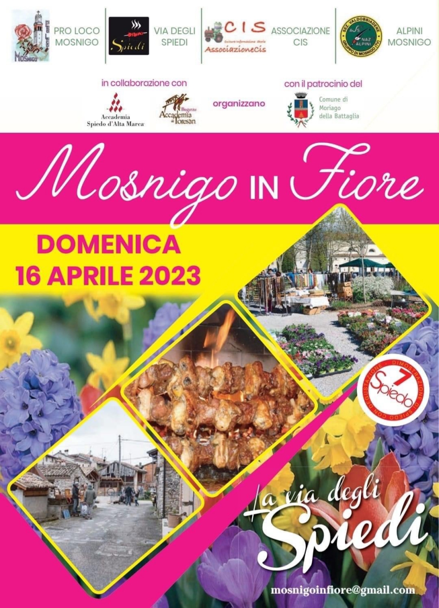 La Pro Loco Mosnigo con il patrocinio del Comune di Moriago della Battaglia e con la collaborazione dell’Associazione CIS, degli Alpini di Mosnigo e Via degli Spiedi ha organizzato Mosnigo in Fiore 2023.