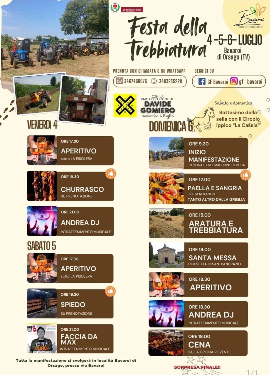 Comitato Festeggiamenti Bavaroi Orsago con il patrocinio del Comune di Orsago ha organizzato la Festa della Trebbiatura 2025.
