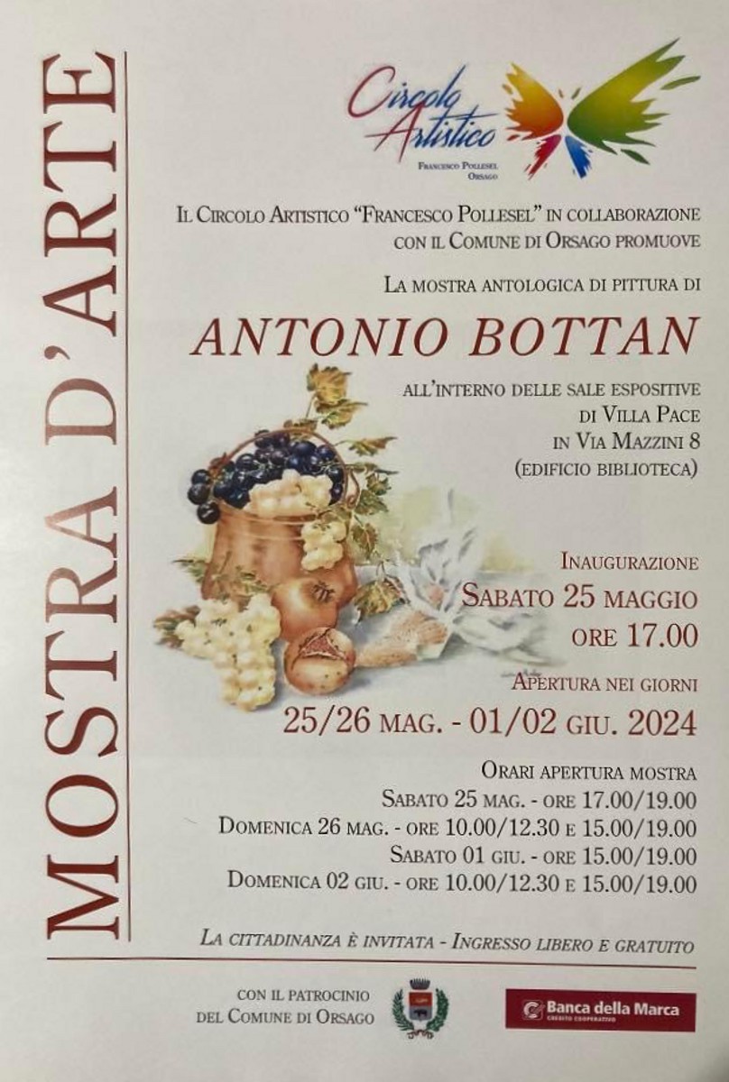 Il Circolo Artistico Francesco Pollesel in collaborazione con il Comune di Orsago promuove la mostra antologica di pittura di Antonio Bottan.