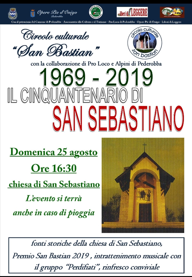 Il Circolo Culturale San Bastian con la collaborazione della Pro Loco di Pederobba, degli Alpini di Pederobba e con il patrocinio del Comune di Pederobba e delle Opere Pie di Onigo hanno organizzato il Cinquantenario di San Sebastiano.