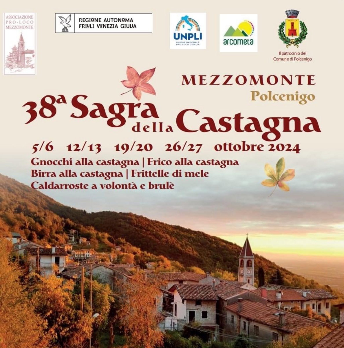 La Pro Loco Mezzomonte con il patrocinio del Comune di Polcenigo e della Regione Friuli Venezia Giulia ha organizzato la 38ª Sagra della castagna.