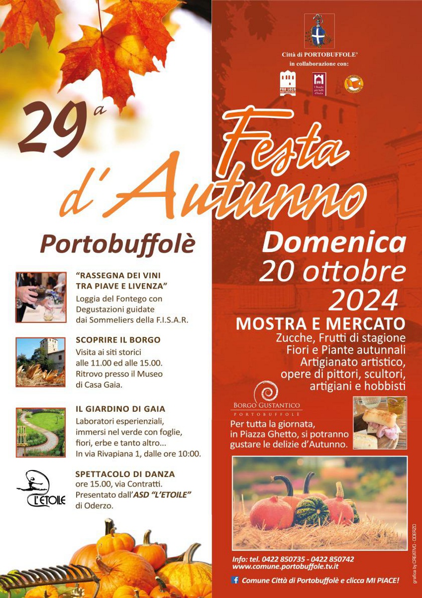 Il Comune di Portobuffolè con la collaborazione della Pro Loco di Portobuffolè ha organizzato la 29ª Festa d’Autunno a Portobuffolè.