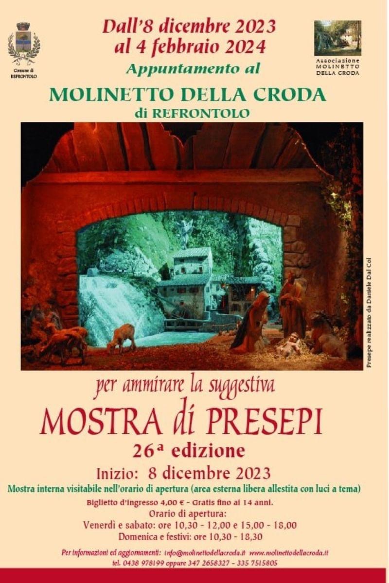 L’Associazione Molinetto della Croda con il patrocinio del Comune di Refrontolo vi invita per ammirare la suggestiva 26ª Mostra di Presepi presso il Mulinetto della Croda.