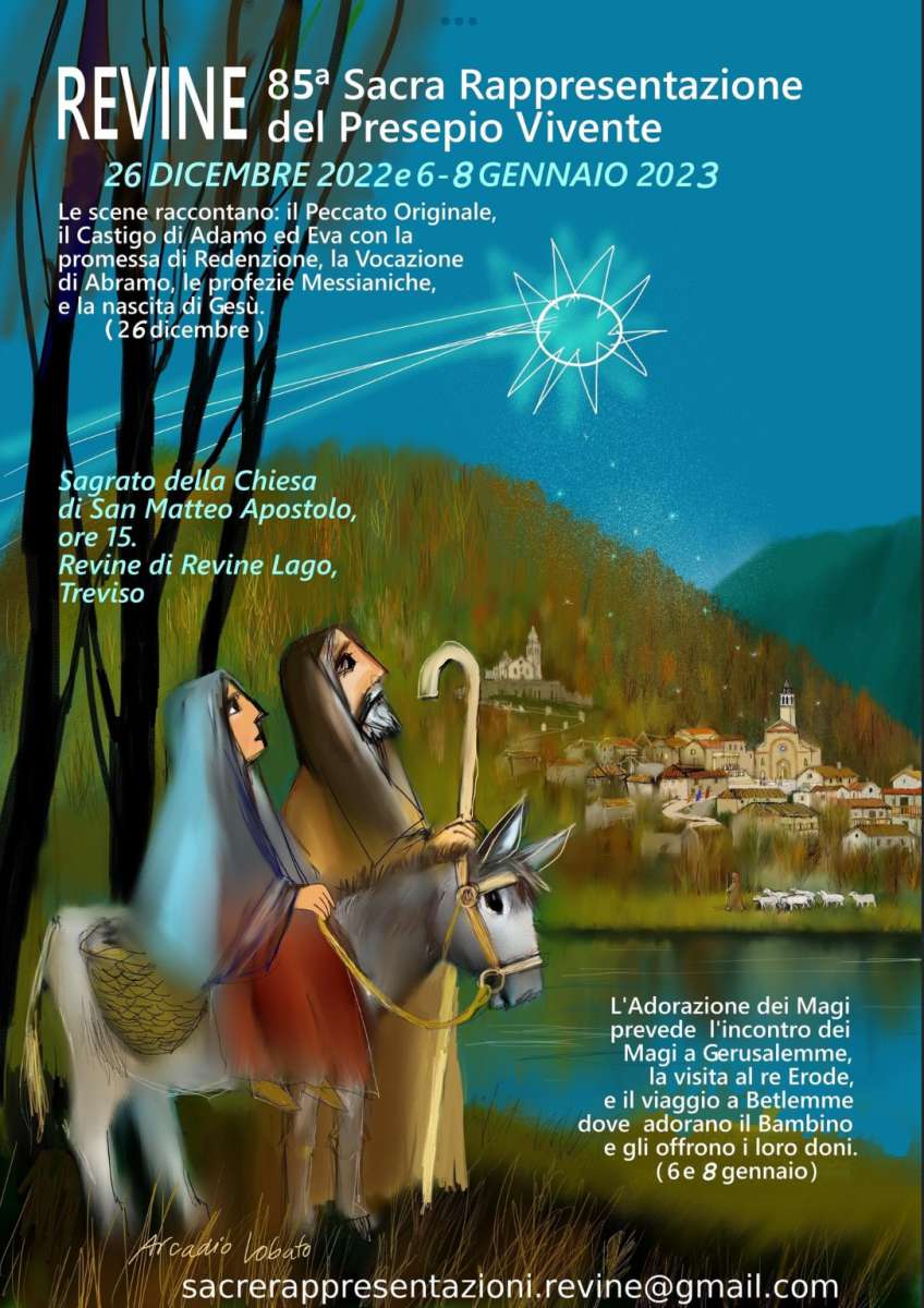 Il Comitato Sacre Rappresentazioni di Revine Lago in collaborazione con la Parrocchia di San Matteo Apostolo, la Pro Loco di Revine Lago e con il patrocinio del Comune di Revine Lago hanno organizzato l’85ª Sacra Rappresentazione del Presepio Vivente.