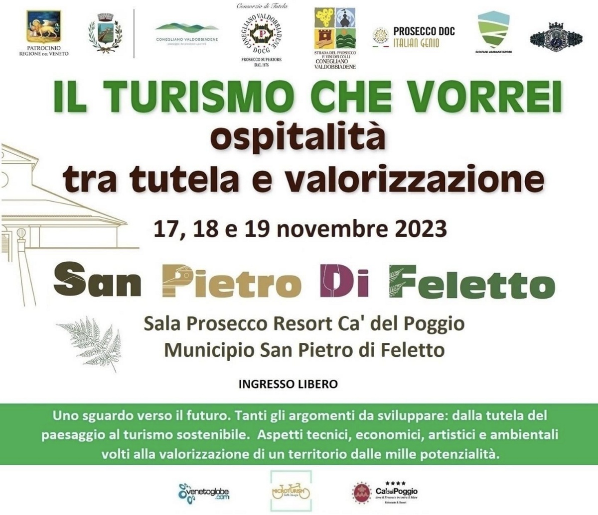 Il Convegno si terrà presso il Municipio di San Pietro di Feletto e presso la Sala Prosecco del Resort Ca’ del Poggio il 17-18-19 novembre 2023.