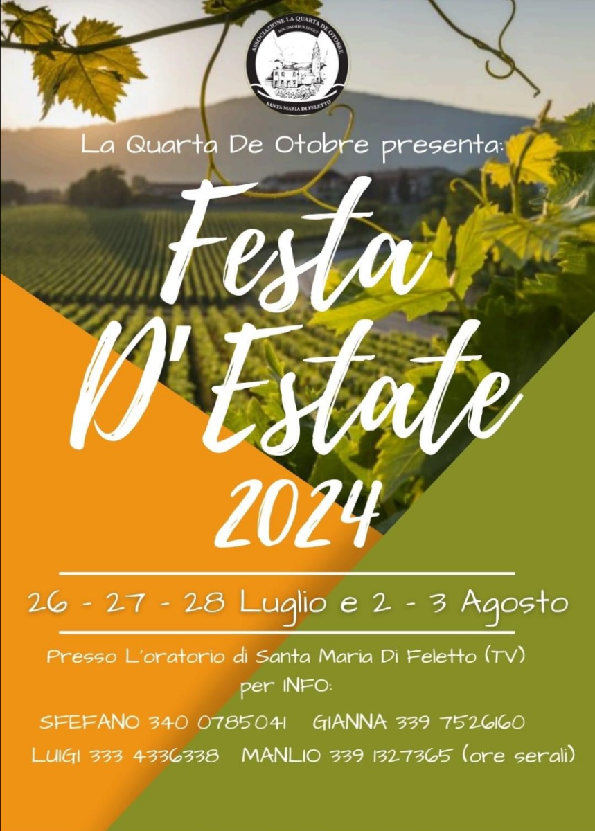 L’Associazione La Quarta de Otobre di Santa Maria di Feletto ha organizzato la Festa d’Estate a San Pietro di Feletto.