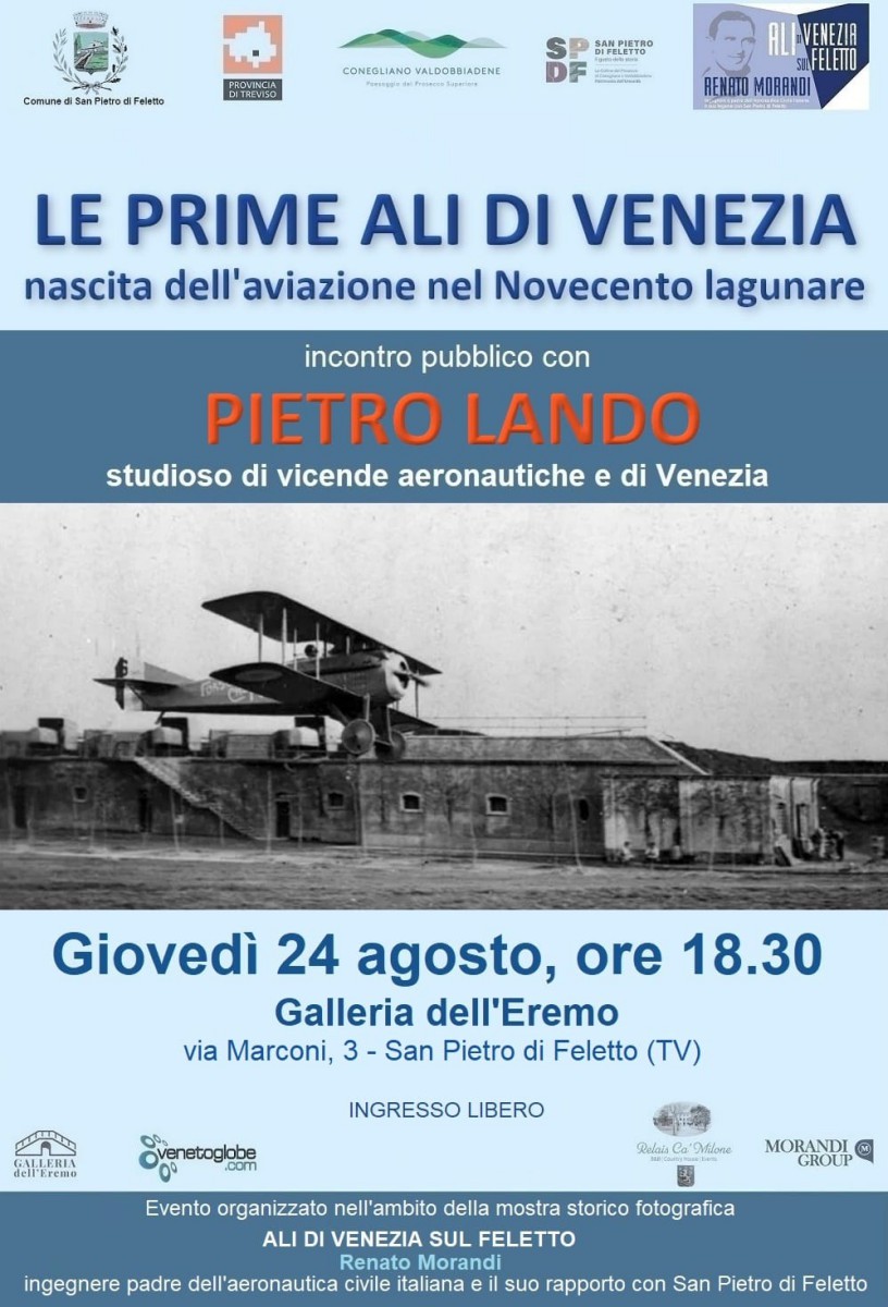 Il Comune di San Pietro di Feletto nell’ambito della mostra Ali di Venezia sul Feletto Renato Morandi ha organizzato una conferenza dal titolo: Le prime ali su Venezia nascita dell’aviazione nel Novecento lagunare.