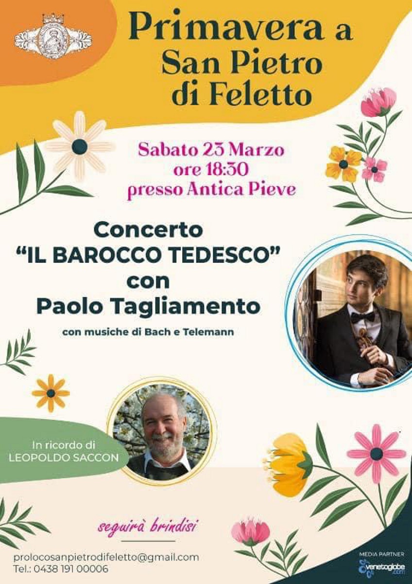 • ore 18.30 Concerto il Barocco Tedesco con Paolo Tagliamento con musiche di Bach e Telemann