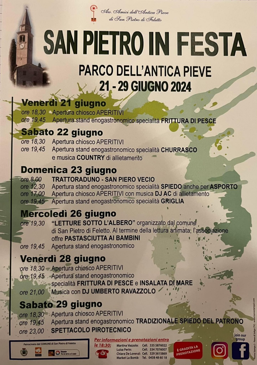 L’Associazione Amici dell’Antica Pieve di San Pietro di Feletto con il patrocinio del Comune di San Pietro di Feletto, della Provincia di Treviso e della Regione Veneto ha organizzato San Pietro in Festa.