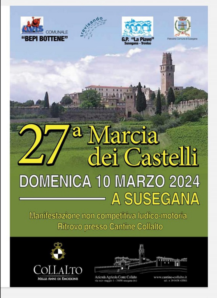 L’Avis Comunale Susegana Bepi Bottene con la collaborazione di G.P. La Piave e dell’Associazione Trevisando con il patrocinio del Comune di Susegana ha organizzato la 27ª Marcia dei Castelli.