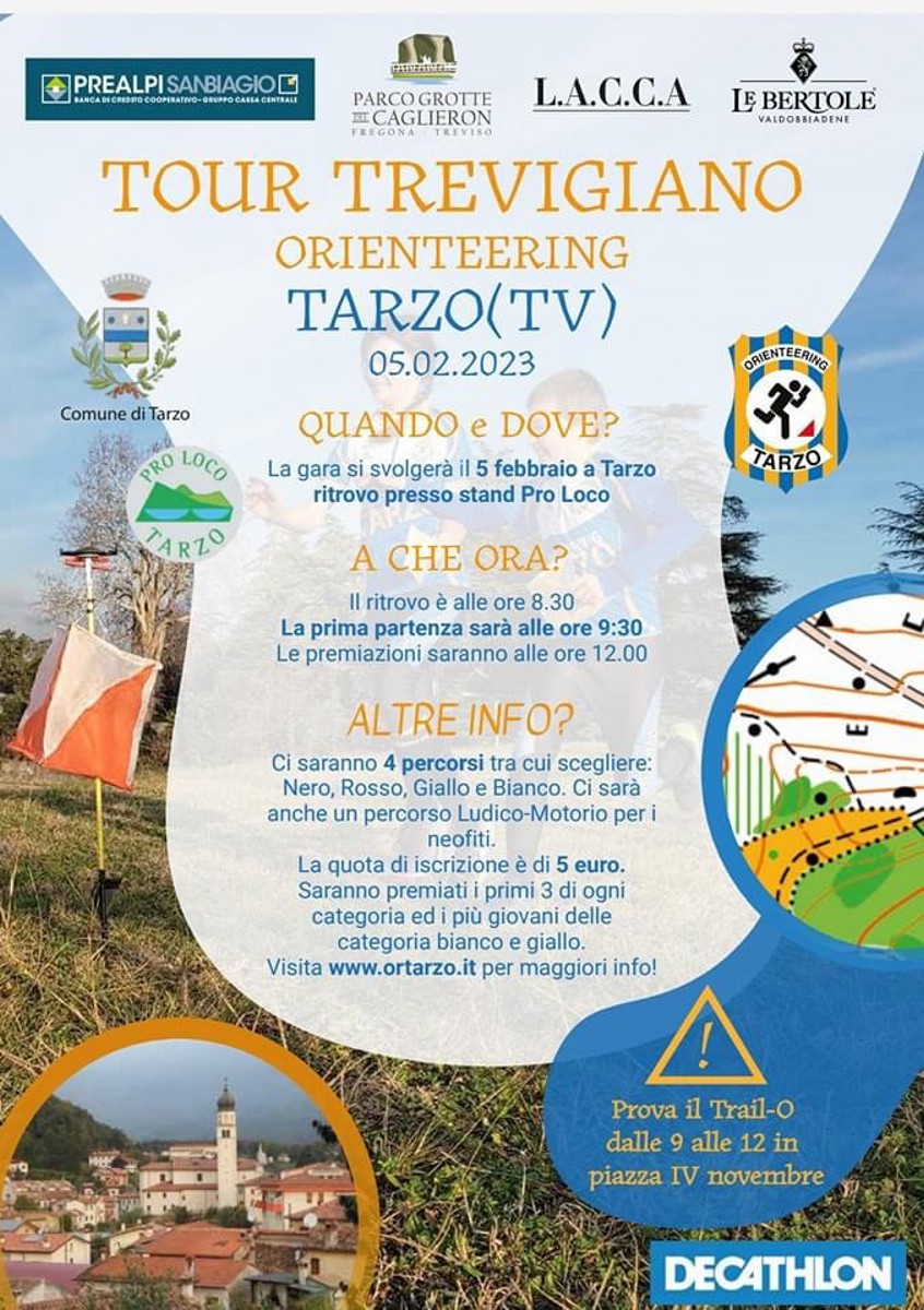 L’Associazione Orienteering Tarzo, con la collaborazione della Pro Loco Tarzo e con il patrocinio del Comune di Tarzo hanno organizzato la 1ª Prova Tour Trevigiano Orienteering 2023.