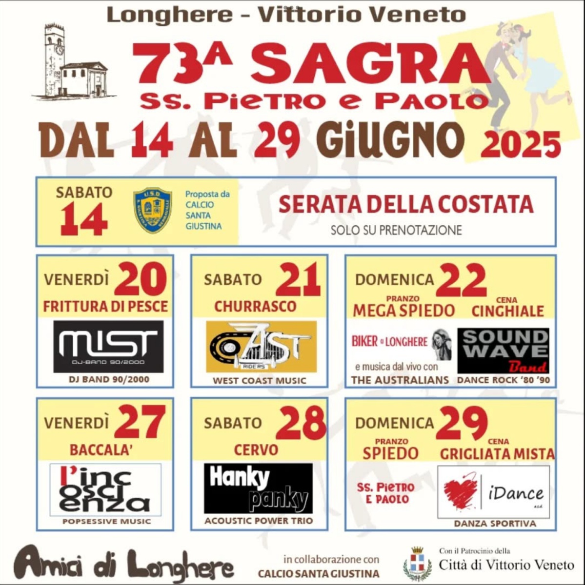 Gli Amici di Longhere in collaborazione con il Calcio Santa Giustina e con il patrocinio della Città di Vittorio Veneto ha organizzato la 73ª Sagra dei Santi Pietro e Paolo a Longhere.