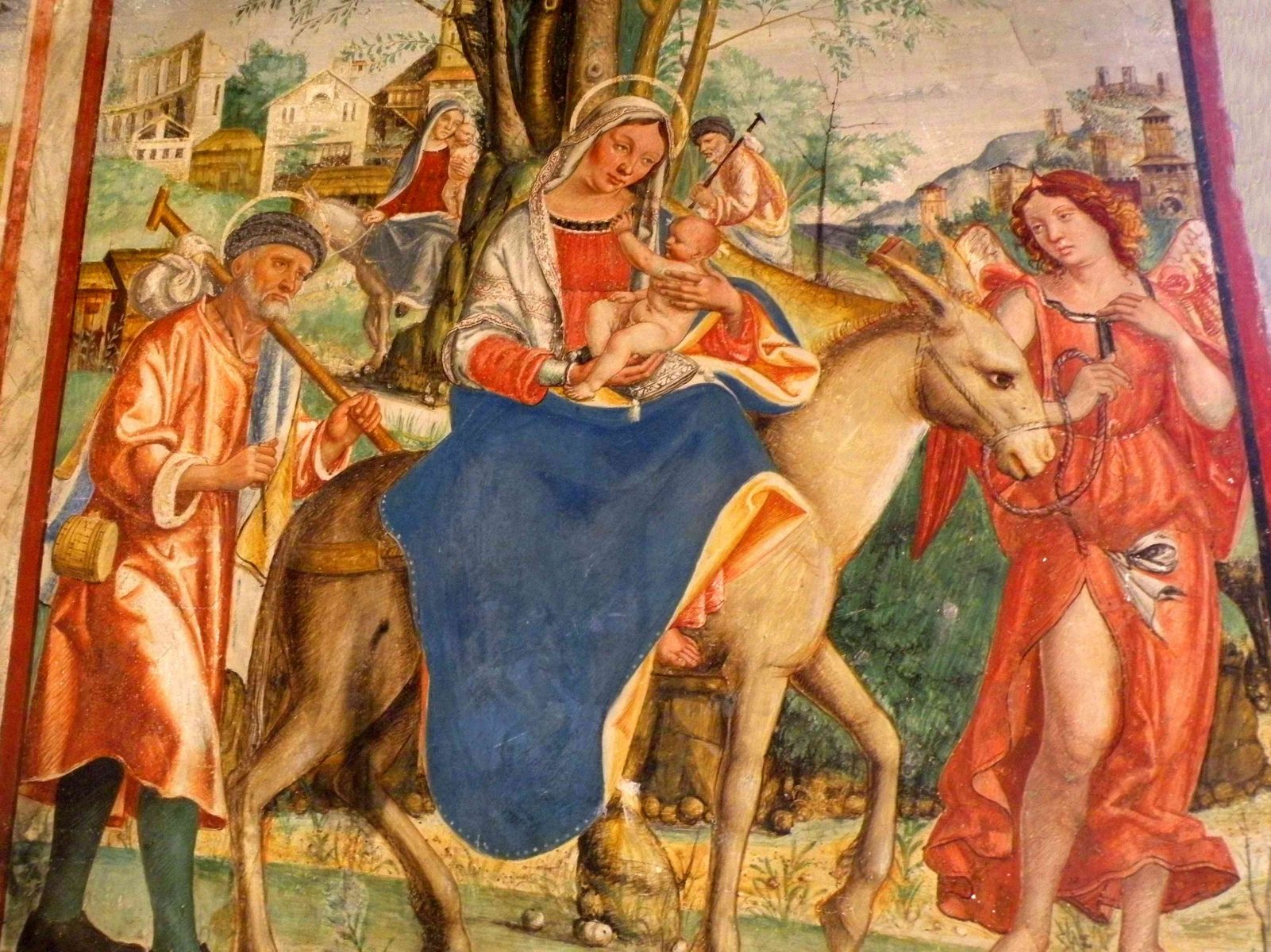 La facciata della chiesa è in realtà nascosta da quella della Sala dei Battuti, che è caratterizzata dalla successione di nove archi a sesto acuto. Questa fu affrescata alla fine del Cinquecento da Ludovico Toeput, detto il Pozzoserrato, con scene tratte dalle sacre scritture realizzate con una monumentalità delle figure che risente ancora del gusto manierista. Guardando la facciata, da sinistra, si possono ammirare i seguenti episodi: Ester supplica Assuero; Davide e l’Arca di Dio; Raab nasconde gli esploratori ebrei; la Madonna soccorre la nave in pericolo che trasporta i Battuti; Salomone e la Regina di Saba; il Diluvio Universale; Gedeone ed il prodigio del vello di lana; la visione di Giacobbe e la Carità.