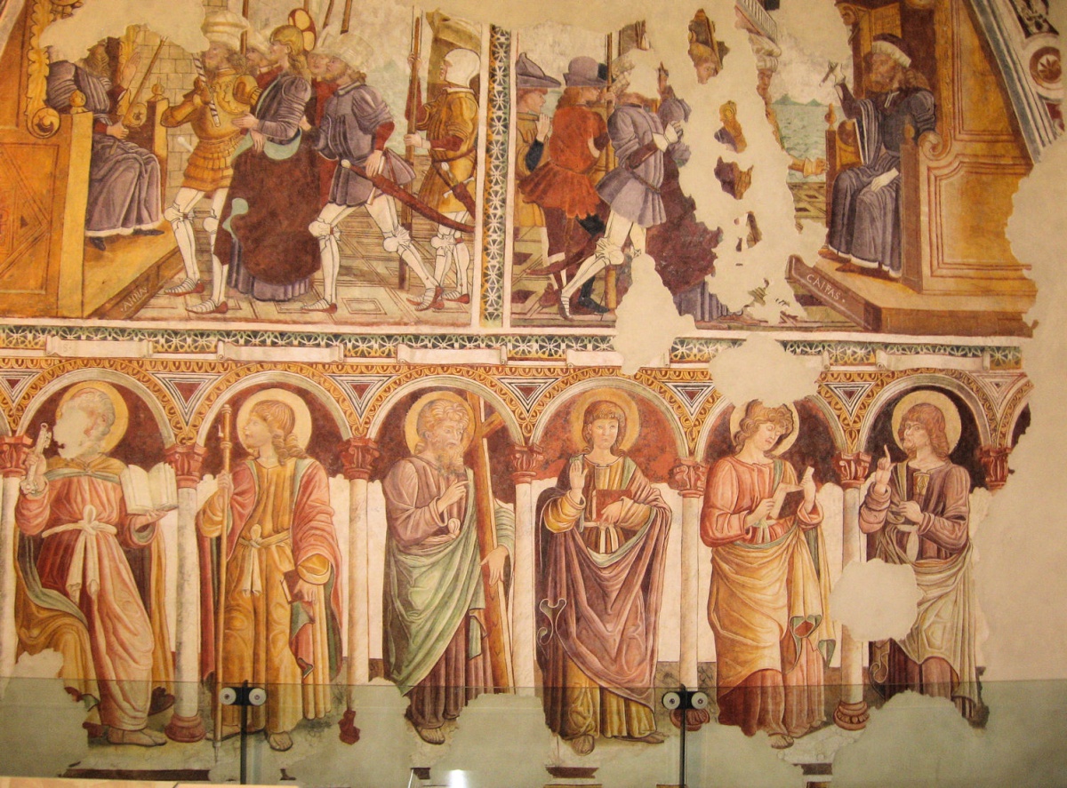 All’interno della chiesa, nel presbiterio, si trova un ciclo di affreschi riferiti alla vita di Santo Stefano. Le raffigurazioni rappresentano il Santo quando venne processato da Pilato (governatore romano), da Caifa (gran sacerdote), Erode (sovrano) e dal Sinedrio che lo condannò in forma definitiva a morte mediante lapidazione.