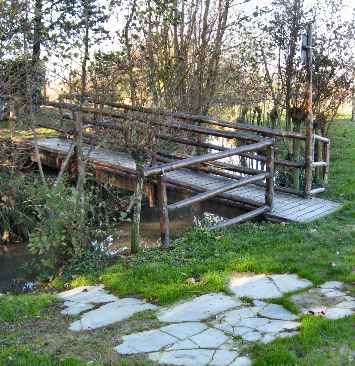 Una passerella in legno permette di superare il percorso delle acque lungo il quale, nella bella stagione si possono notare il germano reale, il tuffetto, la garzetta, l’airone cenerino, l’usignolo di fiume ed altra fauna della zona.