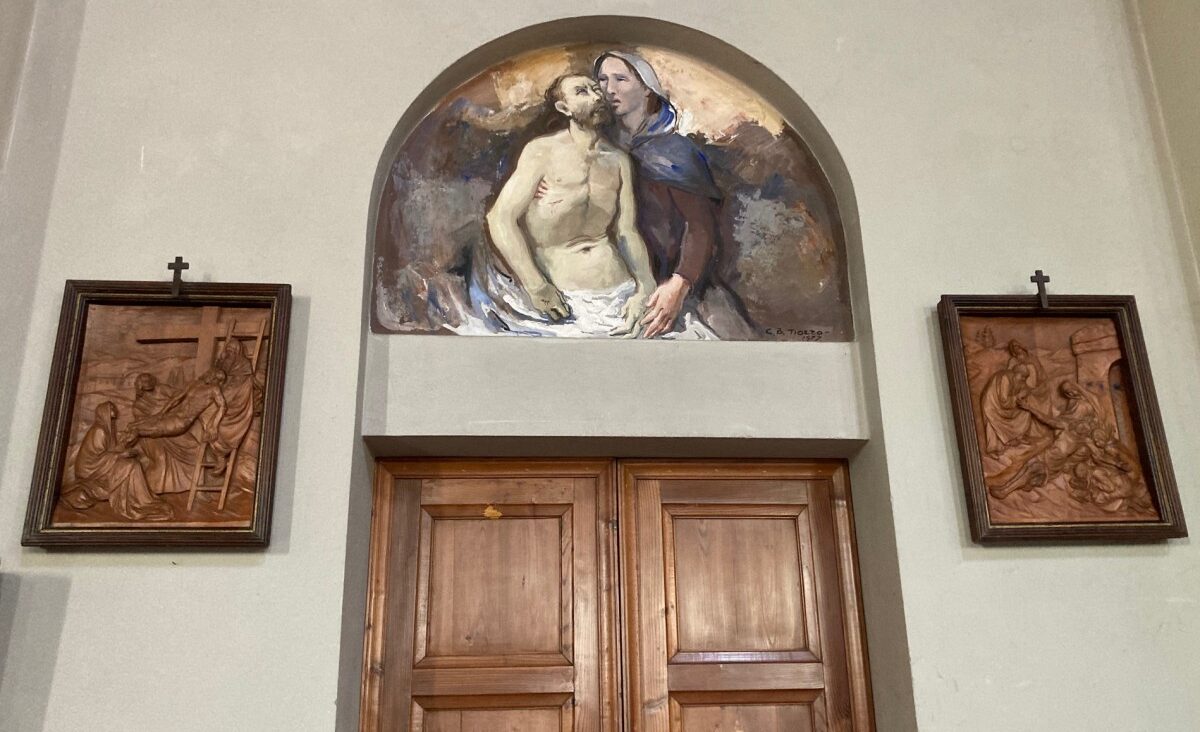 Terminato il lavoro del cielo si decise di sospendere il lavoro per il cattivo tempo e rimandarlo alla primavera del 1925. Questa volta si avvalse dell’aiuto del giovane Astolfo de Maria che lo aiutò nei lavori. Il Cadorin dopo aver avuto apprezzamento dalla Commissione d’Arte Sacra di Vittorio Veneto che ne approvò il bozzetto, si mise al lavoro. All’insaputa del parroco, fece posare per la figura dell’Apostolo Mattia niente di meno che il Sindaco di allora, Giovanni Durante, poi anche il giudice conciliatore, il farmacista ecc… L’eco fu grande tanto che la stampa nazionale ne parlò e la popolazione gridò allo scandalo.