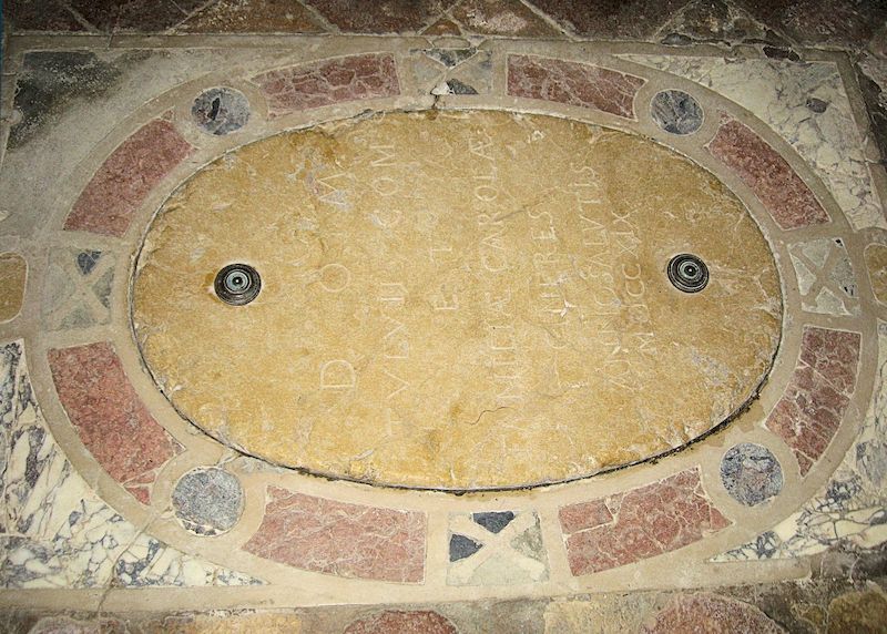 D.O.M. TVLII COM. ET FAMILIAE CAROLAE CINERES ANNO SALUTIS MDCCXIX