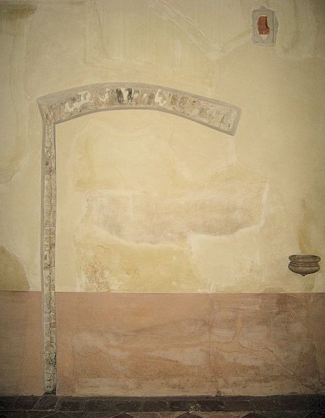 Sulle pareti laterali ci sono due acquasantiere in pietra e, più in alto, ci sono alcuni bassorilievi raffiguranti i quattro evangelisti.