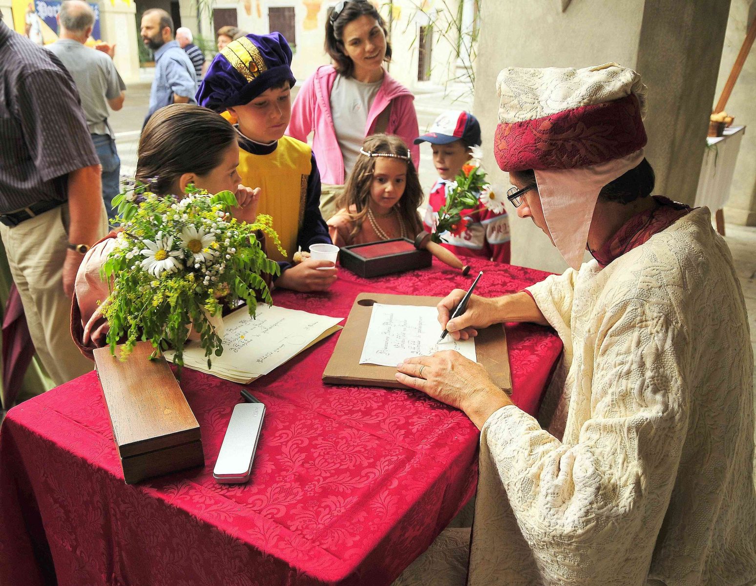 Le principali piazze sono animate da saltimbanchi e sbandieratori, in un’atmosfera resa suggestiva dalla sola luce delle fiaccole.