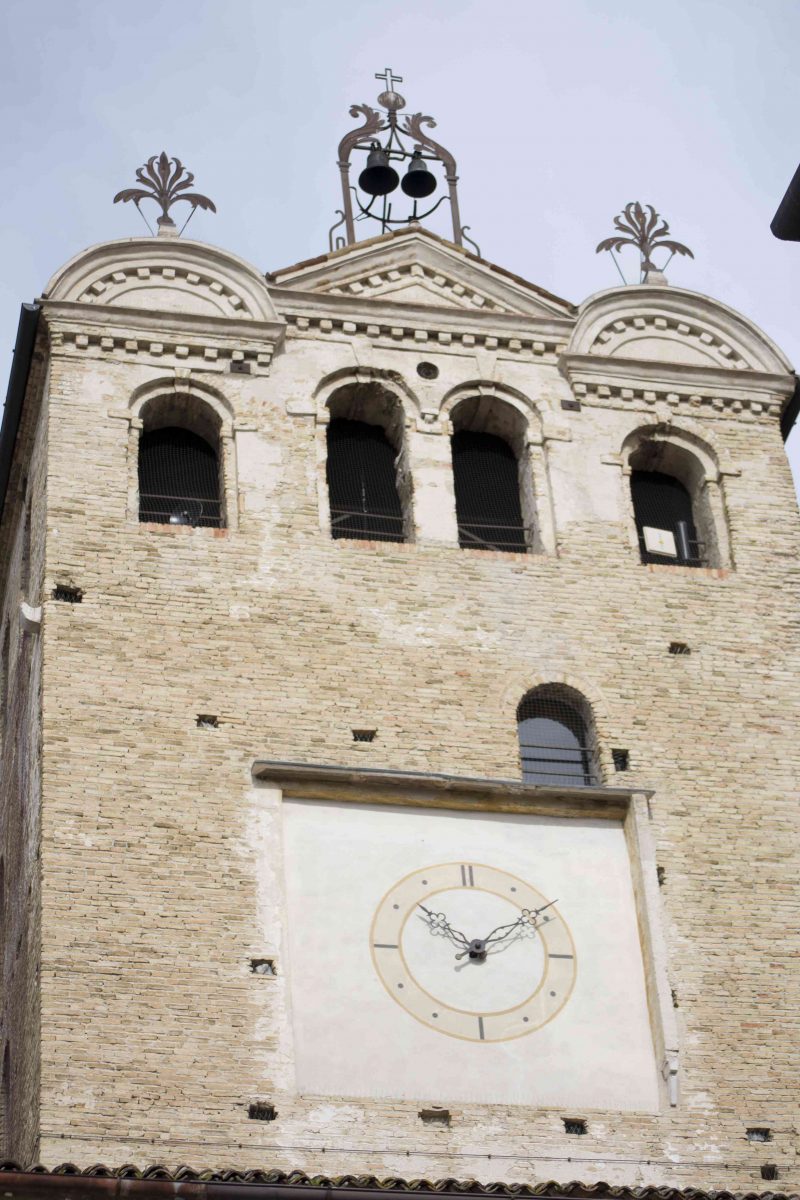 Nel 1881 nell’ultimo piano della torre vennero installate delle campane con tutto l’impianto a corredo trasformando il manufatto in torre campanaria, funzione attiva ancor oggi. La cella campanaria ospita tre campane mentre più in basso è fissato l’orologio che scandisce le ore nell’antico Borgo di Portobuffolè.