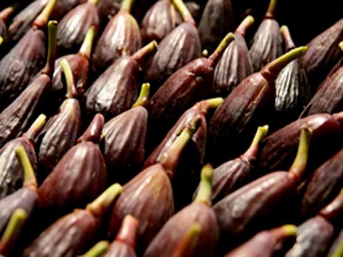 Il frutto ha una forma a siconio di tonalità che vanno dal verde al nero-violaceo a seconda della maturazione.