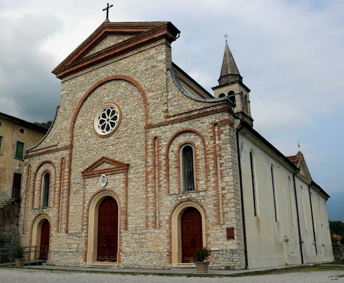 La chiesa di San Matteo Apostolo si trova nella frazione di Revine, disposta sulla costa della montagna.