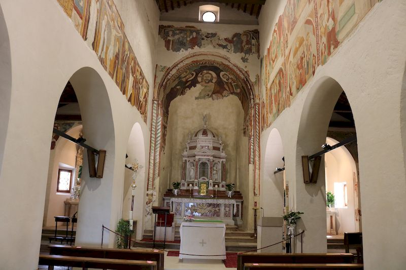 Internamente diversi sono gli stili che caratterizzano gli affreschi dell’antica Pieve. Fra questi è possibile notare il romanico con una forte impronta locale lungo la navata centrale, la pittura tardo-gotica nella cappella dedicata a San Sebastiano e lo stile barocco sull’altare maggiore.