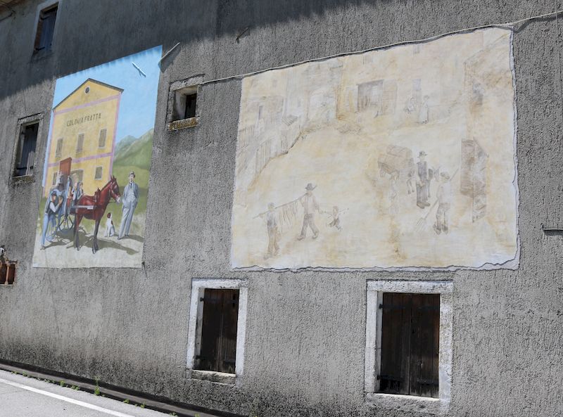 La via dei Murales non è propriamente una via ma un percorso nato da un’iniziativa che coinvolse due frazioni di Tarzo: Fratta e Colmaggiore.